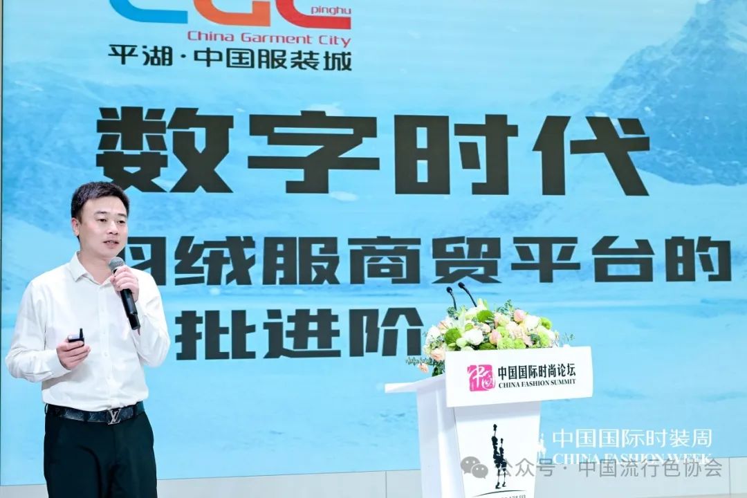 而在全国服装商贸平台中,与平湖羽绒服共同发展壮大并享誉全国的,还有平湖中国服装城。如今的服装城作为全国首屈一指的羽绒服一级批发市场及ODM供应基地,入驻企业已达2400余家,羽绒服产品销往全国30多个省市和20多个国家及地区。平湖服装城副总经理张斌飞在分享环节中说道:“从最初的百货业态到羽绒服专业市场到数字化市场,服装城带动就业10万人左右,这么多年,平湖中国服装城做到了从漫漫精细化管理到拥抱数字化时代,完成了摸索与前行。未来也将全力赋能上下游产业链,推动羽绒服产业更好地发展。”