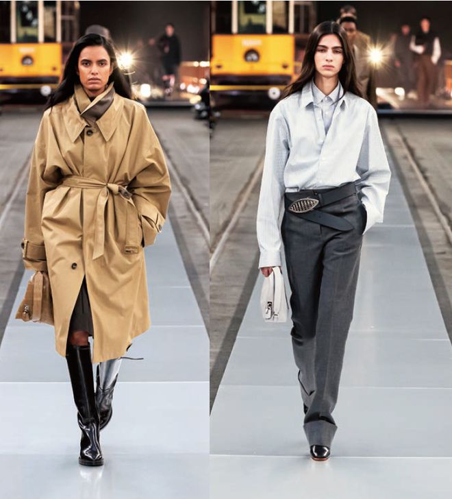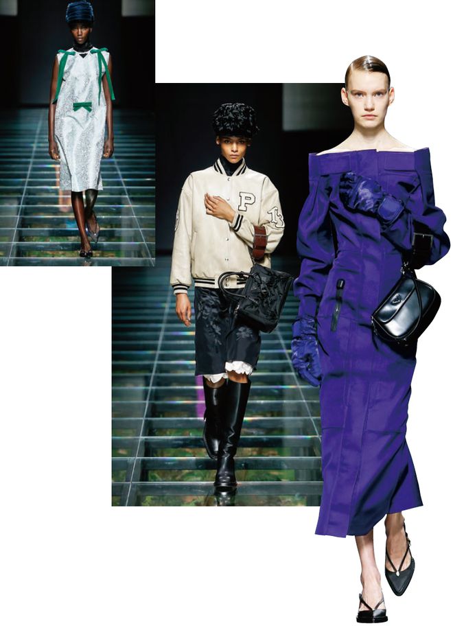 对历史的迷恋源于本能。Miuccia Prada与Raf Simons共同呈现的Prada 2024秋冬系列糅合前卫时尚与历史碎片,对始终引人共鸣的美学理想做出情感回应,勾勒出记忆构筑的当代世界。一场邂逅过去的浪漫之旅由此开启。气魄硬朗的西装外套、机车夹克结合精致刺绣和轻裹身形的剪裁,焕新线条与细节,脆弱与力量形成鲜明对比,传统男装材质蜕变为内在柔美面料。标志性女装元素被重新审视,赋予崭新内涵。蝴蝶结点缀利落剪裁的直筒连衣裙,鞋履与帽饰将比例推向极致,直观展露女性特质。伊人姿态自然随性:手袋悬垂,太阳镜呼应妆容。生活方式化为服装构型,人类生活的无形痕迹得以具象呈现。时装秀如同一场问与答的互动,拉开与世界的对谈,唤起思想碰撞。这种本能,这份沟通与表达的渴求,是根植于人类思维的冲动—借由着装触及彼此,传递情感。
